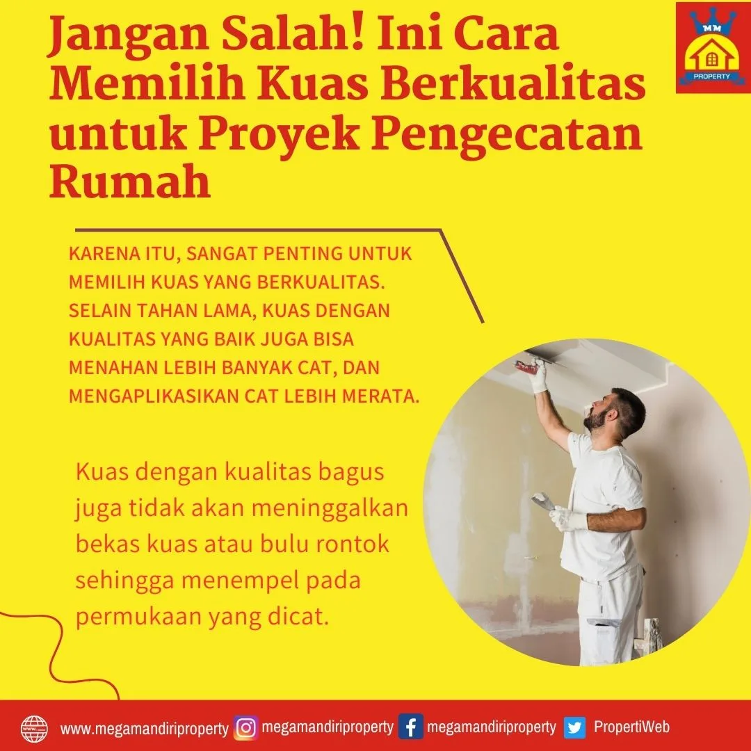 Karena itu, sangat penting untuk memilih kuas yang berkualitas. Selain tahan lama, kuas dengan kualitas yang baik juga bisa menahan lebih banyak cat, dan mengaplikasikan cat lebih merata.